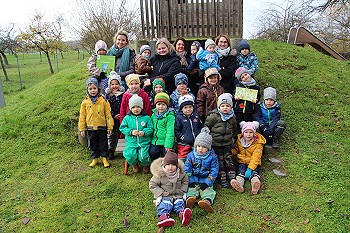 Freuen sich über die Auszeichnung des Titels „ÖkoKids“: die Kinder sowie das pädagogische Team der städtischen KiTa Seifriedsburg